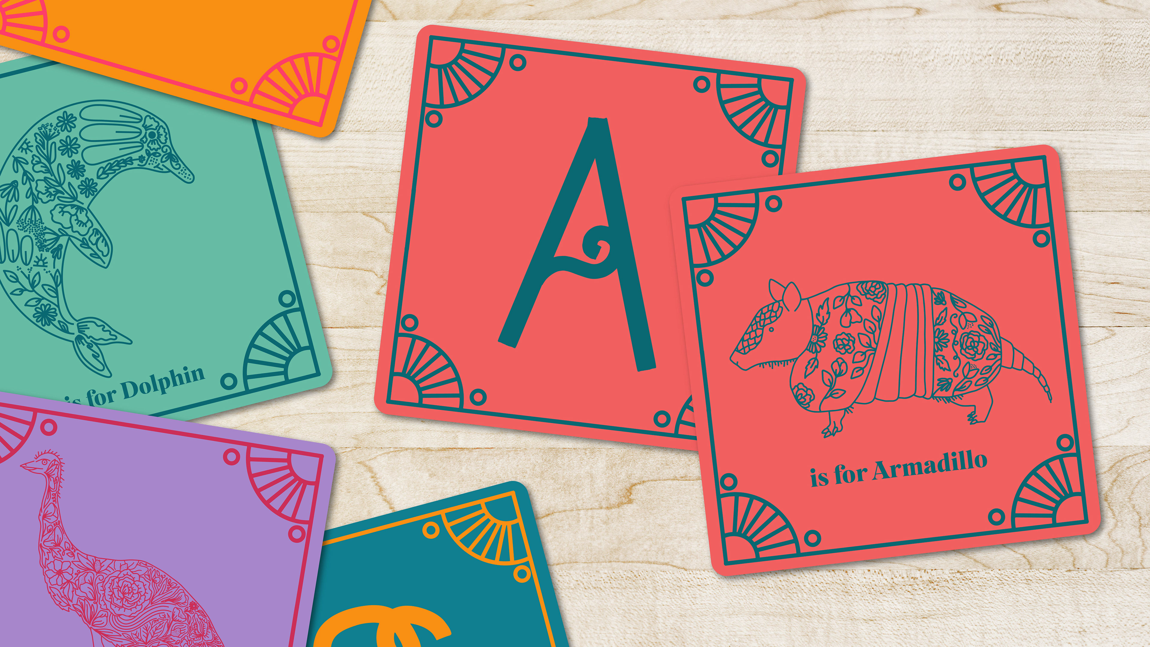 I love drawing florals, so I thought it would be a fun challenge to combine my love of botanicals with animals for some not so traditional baby abc cards.