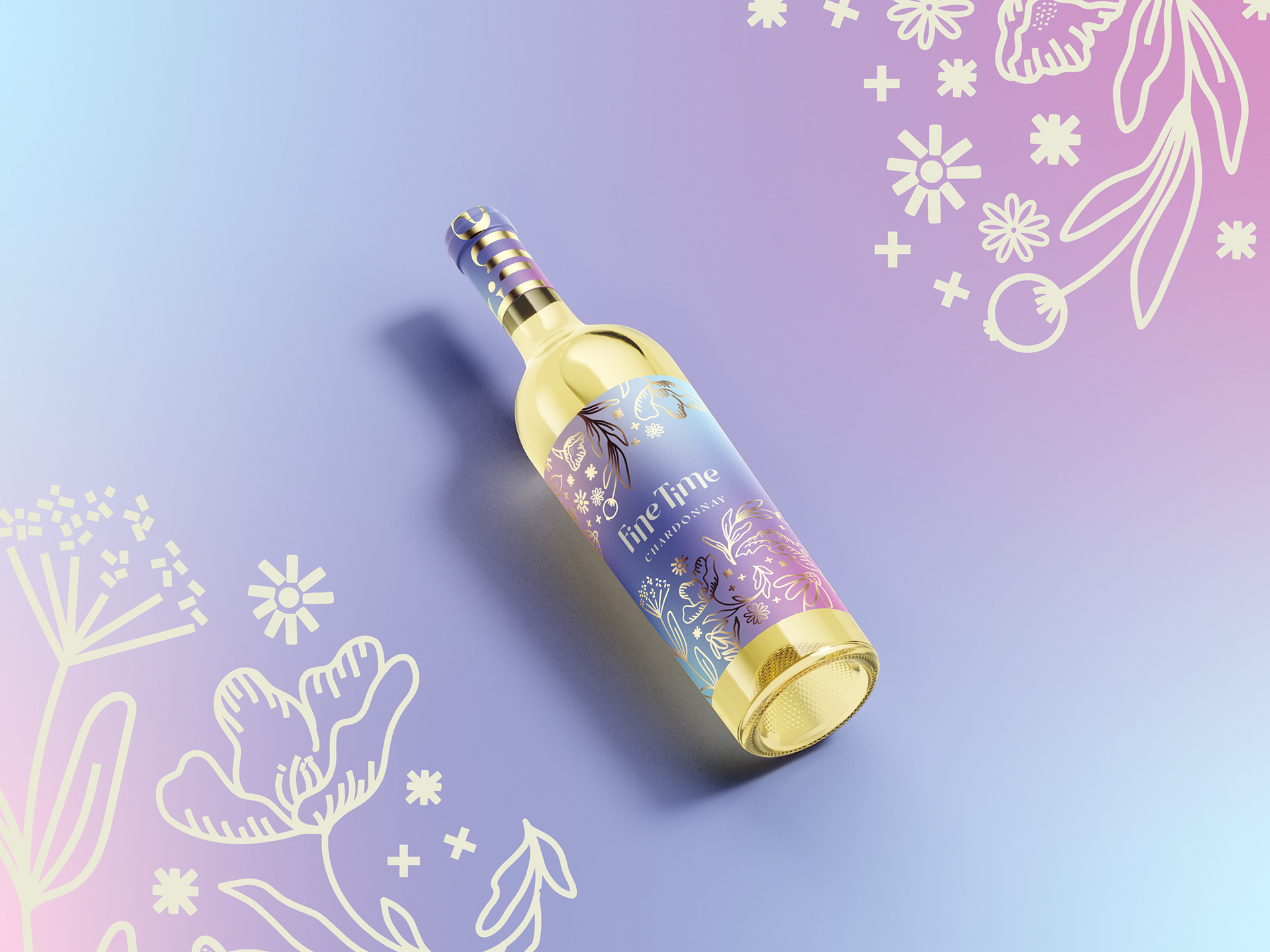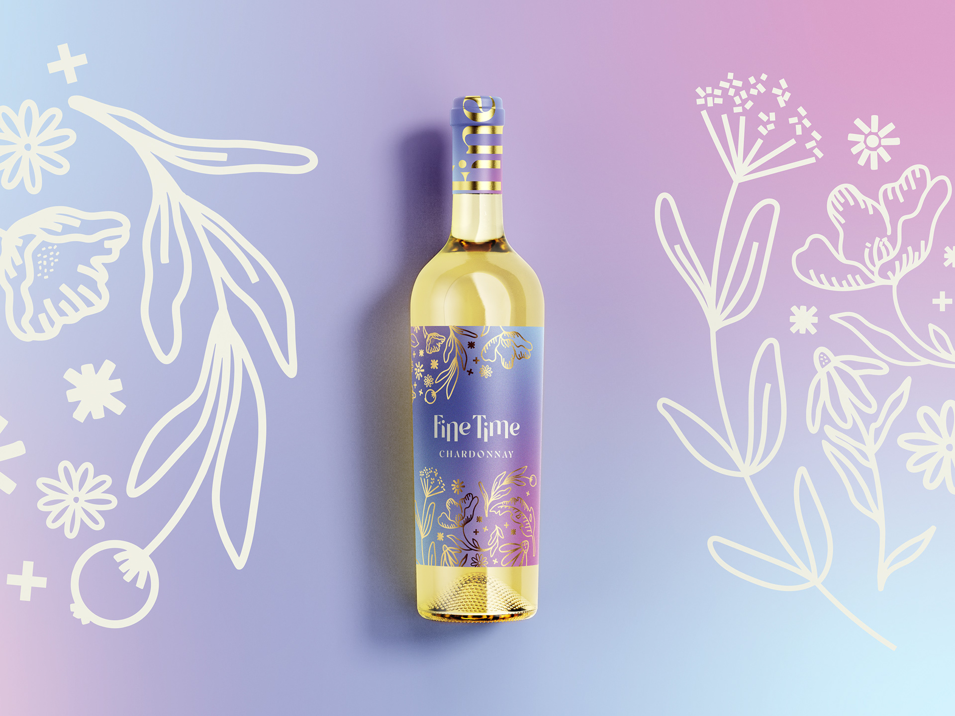 Floral Themed Wine Packaging for Fine Time Chardonnay